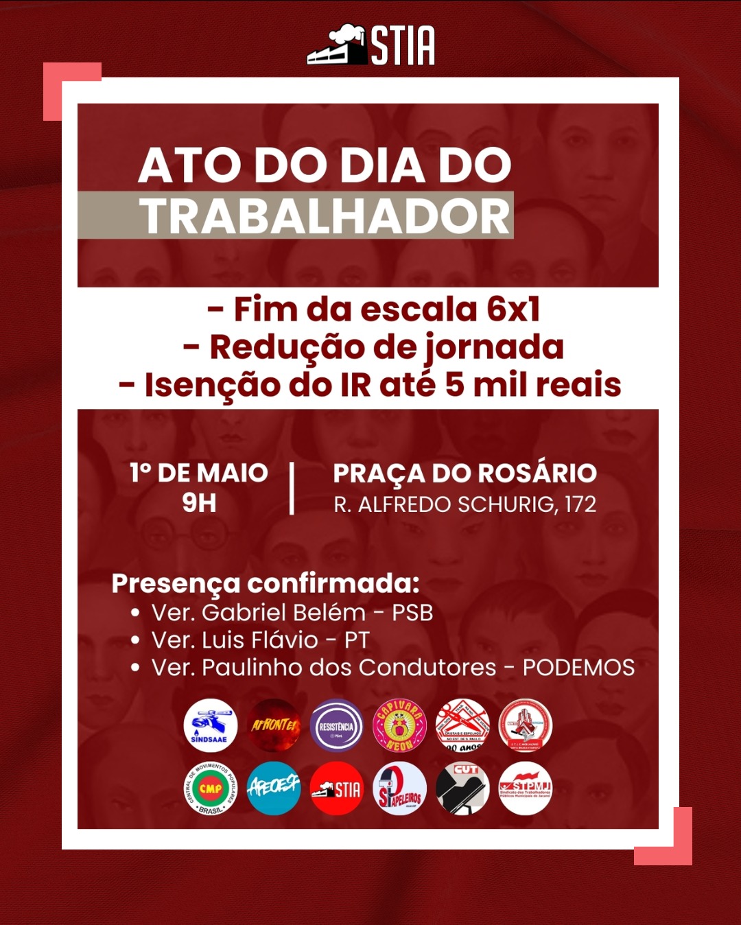 No próximo Dia do Trabalhador, 1º de Maio, o Sindicato realiza um importante ato unificado para lutar por: